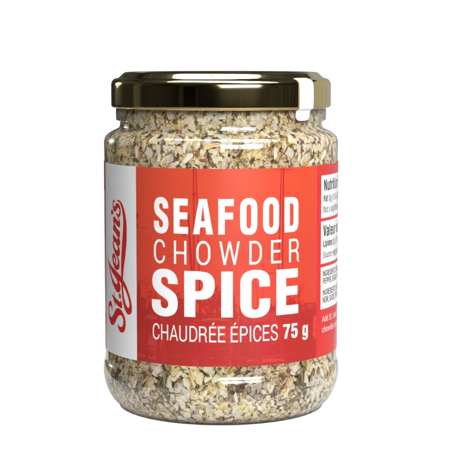 A: St. Jean’s Seafood Chowder Spice combines herbs and spices that perfectly balance the richness of cream-based chowders and the delicate flavour of seafood.